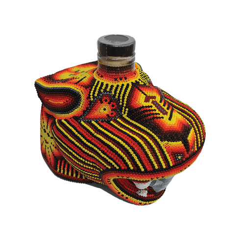 Chaquira Beaded Jaguar Reposado 750ml. Chaquira Beaded Jaguar Reposado 750ml Reposado. A bottle of reposado Tequila packaged in a delightful jaguar-shaped bottle decorate with chaquira beads.